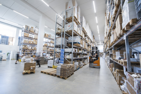 Umsiedlung in das neue Logistikcenter mit einer Lagerfähigkeit von über 3000 Paletten und dem automatischen Hochregallager.